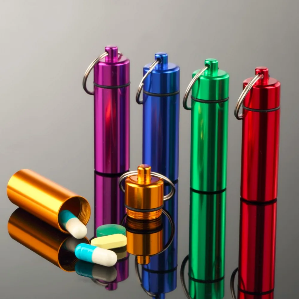 Premium 1Pcs Portable WaterProof Mini Blue Aluminum Keychain Tablet Storage Box Bottle Case Holder