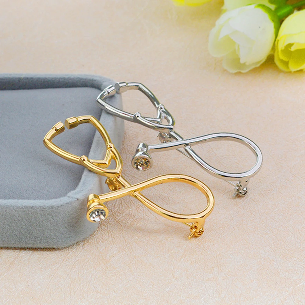 Luxury Creative Unisex Medical Stethoscope Rhinestone Brooch Pin Clothes Collar Jewelry trendy