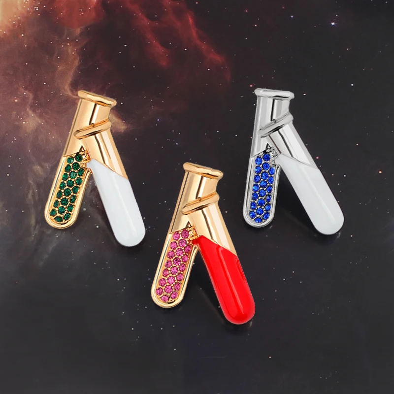 Best Offer Science Test Tube Flask Brooch Tricolor Rhinestone Crystal Chemistry Experiment Instrument Pin Medi | Science Series Brooch Geometric Cube Planet "Clumsy Professor/Chemical X" Science is Magic Enamel Pin Badge Science Lovers Gifts