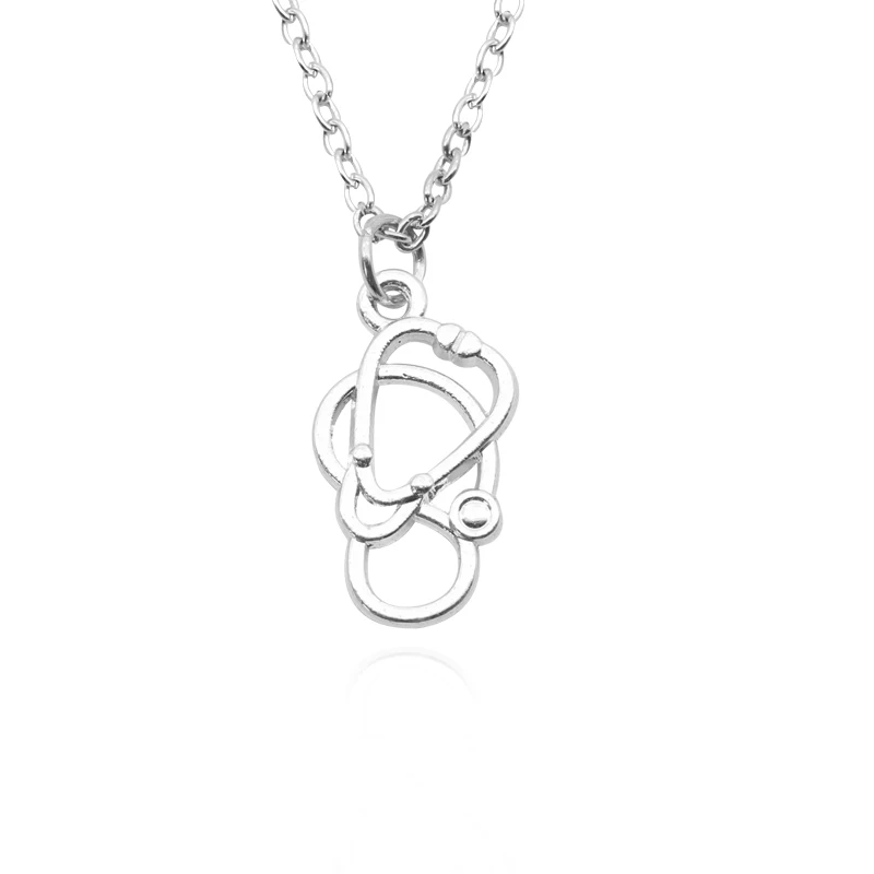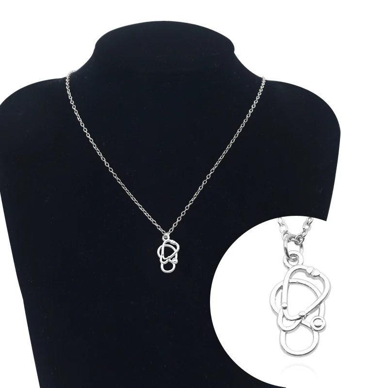 Clearance 2019 Trendy Hollow Silver Stethoscope Pendant Necklace Women Metal Medical Jewelry Doctor Nurse Gra
