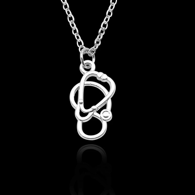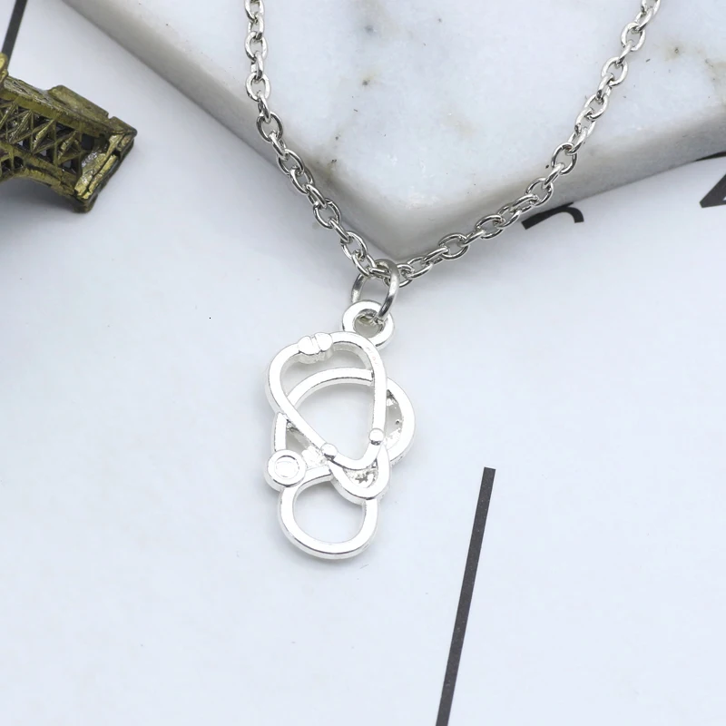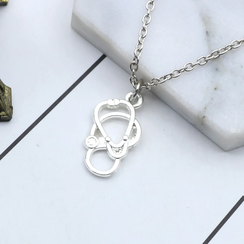 Coupon Trendy Hollow Silver Stethoscope Necklace Women Metal Medical Jewelry Doctor Nurse Graduation Gifts